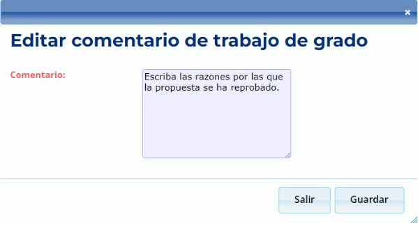Al Reprobar una propuesta debe agregar un Comentario con el siguiente ícono: