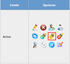 Toda propuesta inicia con estado Activo, una vez completado el Requisito, puede proceder a cambiar dicho estado por medio de uno de los siguientes íconos: