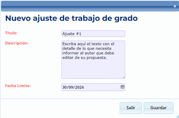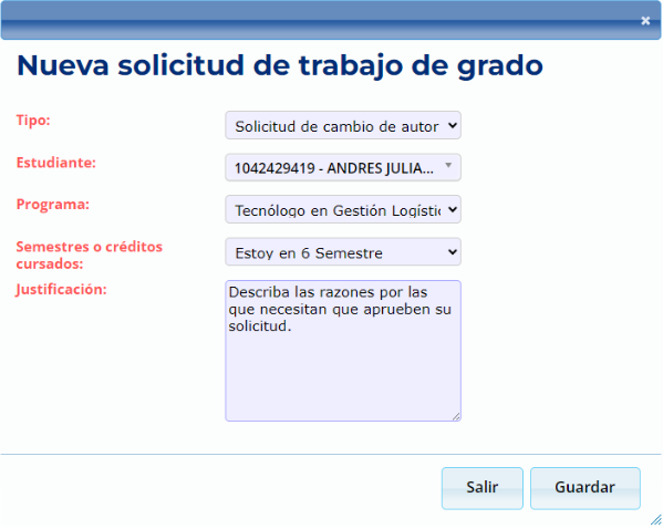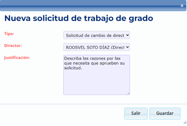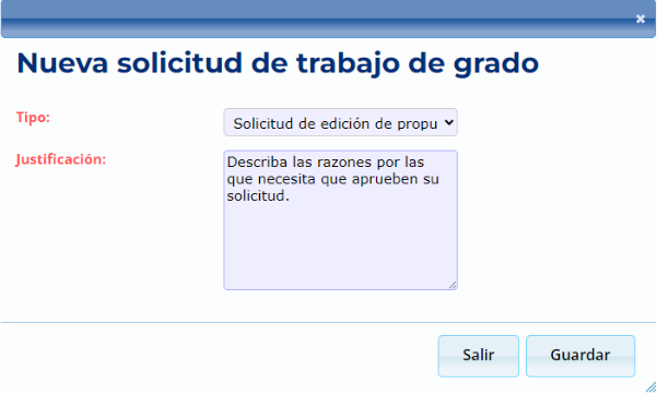 Nota: La edición de una propuesta no permite editar los Autores, ni Directores del Trabajo de Grado, en cambio el estudiante debe realizar la solicitud correspondiente a su necesidad para que la coordinación realice dicho cambio.