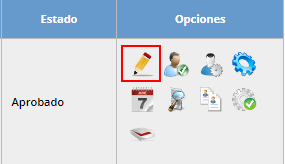 En caso de tener un ajuste habilitado, producto de una respuesta positiva a su solicitud, los estudiantes pueden editarla por medio del siguiente ícono: