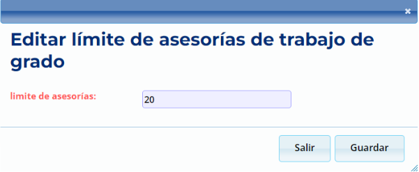 En caso de que se necesite editar el límite de asesorías, en el listado principal de propuestas de trabajos de grado de click en el siguiente ícono:
